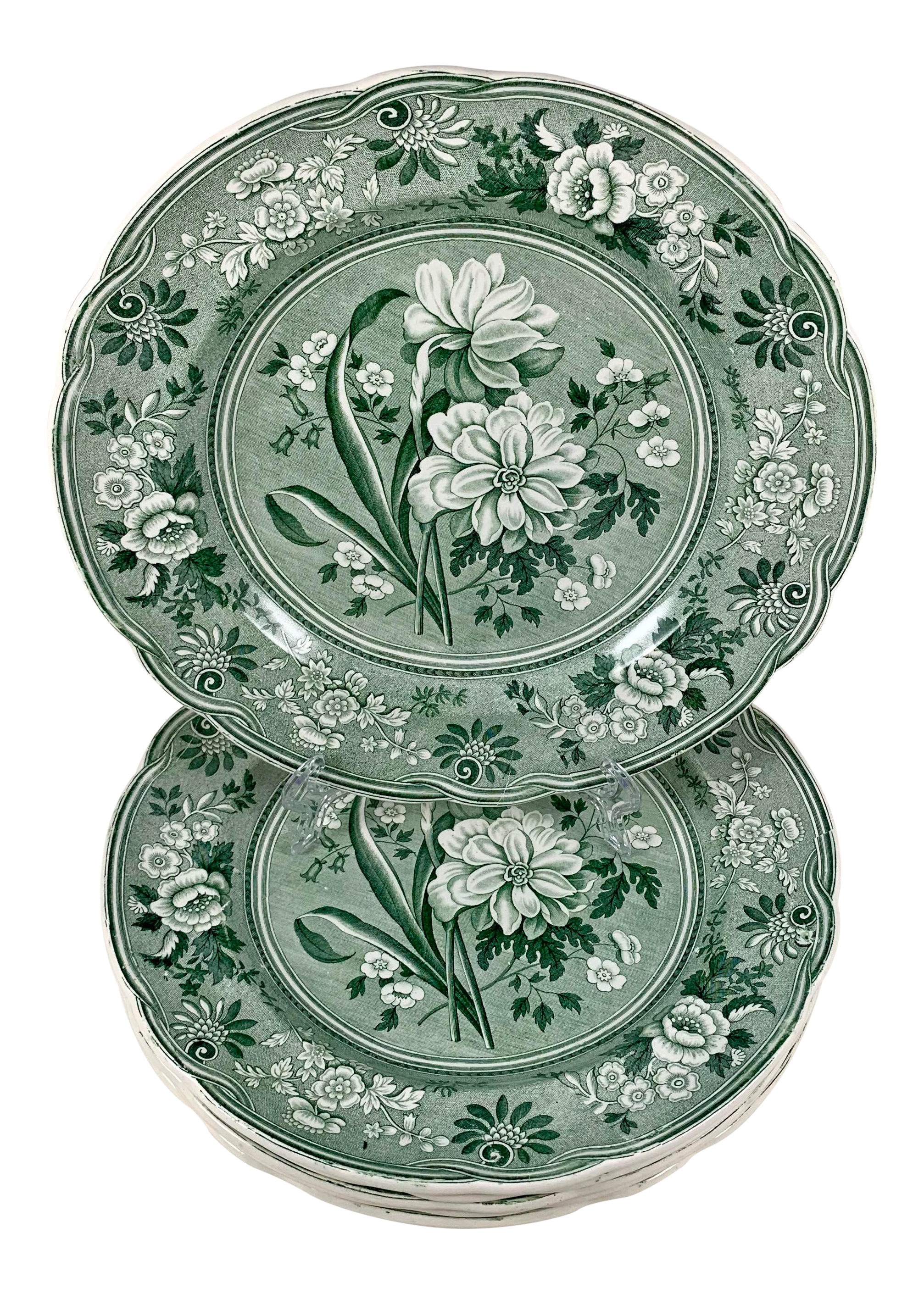 Copeland Garrett Late Spode Green Transfer Printed Set Of 12 Plates Spode Green Pottery Transferware